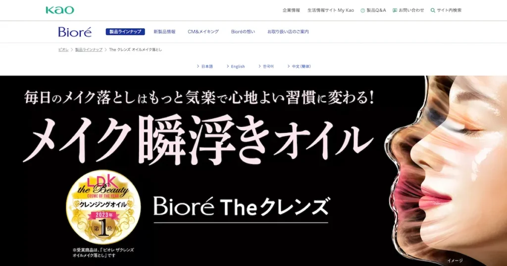 画像:The クレンズ オイルメイク落とし | 製品ラインナップ | ビオレ | 花王株式会社