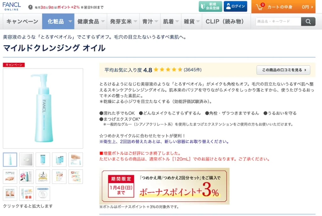 価格は高いですが、肌への投資対効果は最大。「クレンジングで肌質が変わる」体験をしたいならこれ一択。 - FANCL マイルドクレンジングオイル