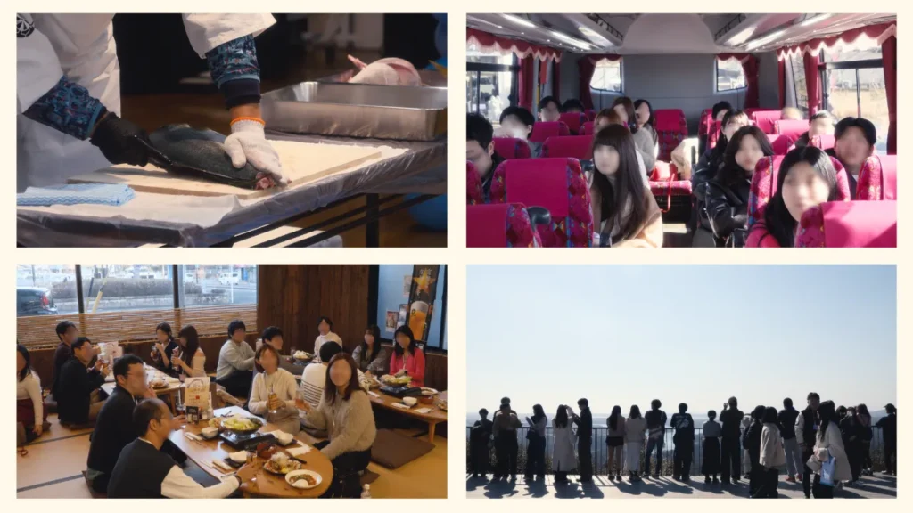 「志摩お見合いトラベルin志摩」は、商工会の皆さまが企画してくださった解体ショーからスタート。目の前でさばかれる迫力に会場は一気に盛り上がり、志摩の新鮮な魚介をみんなでおいしく味わいました。