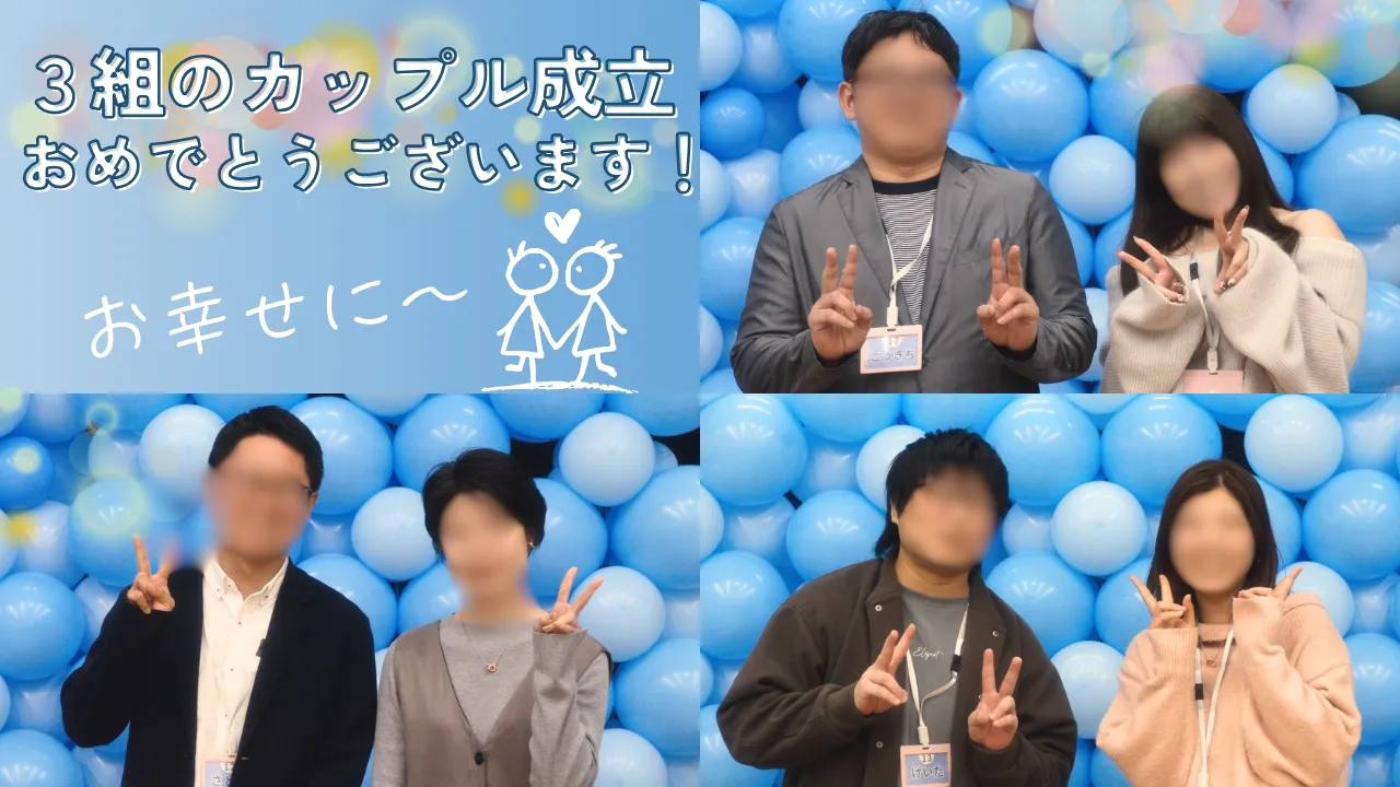 1日目にはまだ少し距離を感じていた参加者同士も、時間を重ねるごとに自然と打ち解け、2日目にぐっと距離が縮まる場面も。最終的に3組のカップルが誕生し、新しい交際がスタートしました。