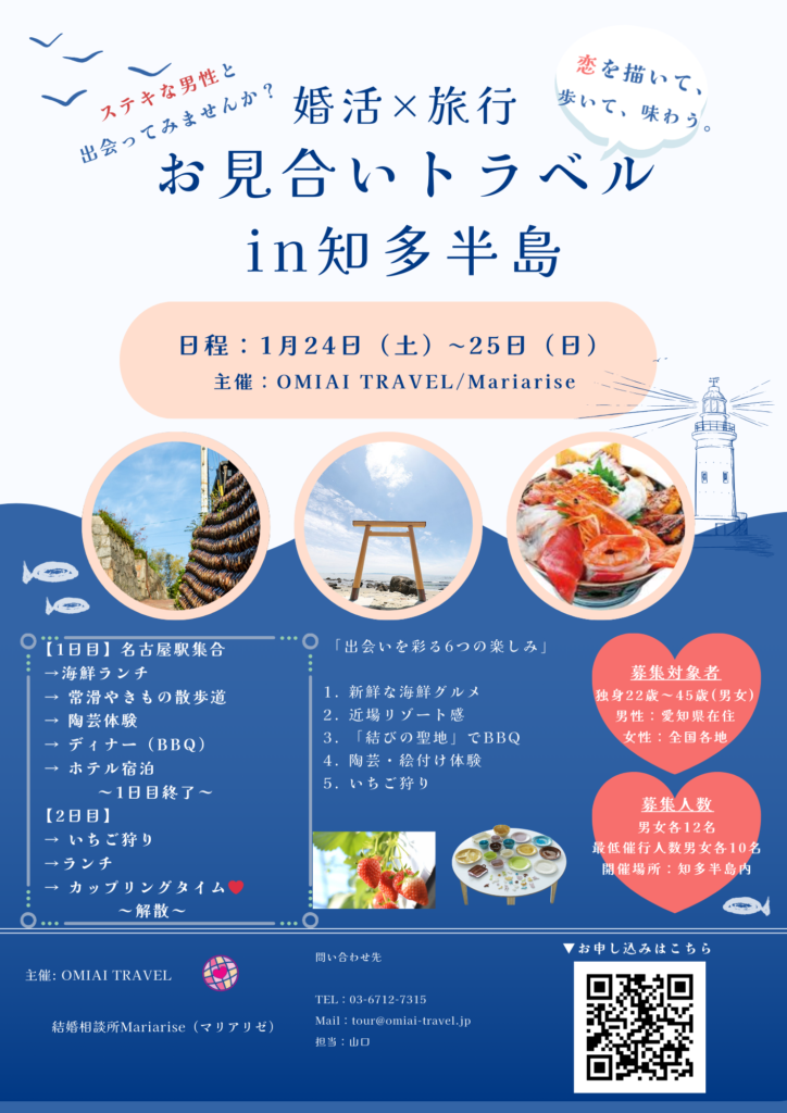 「お見合いトラベル」では、婚活旅をテーマに全国各地でお見合いイベントを開催しています。身近な地域内での出会いではなく、全国各地と地方自治体をつなぐことで、継続可能な地域社会の実現に貢献しております。