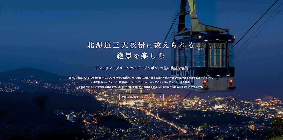 ロープウェイで山頂まで行くと、小樽市街を一望することができます。特に夜景が美しく、デートスポットとしても非常に人気です。なお、山頂には「天狗の鼻をなでると願いが叶う」と言われているパワースポットもあります。